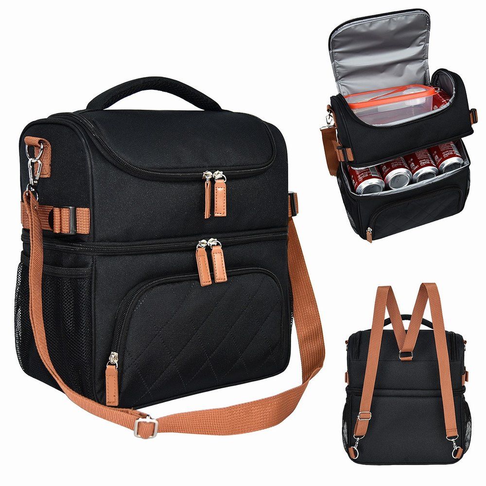 Kätevä kylmälaukku, jota voit käyttää reppuna tai olkahihnalla. Irrotettava hihna, kaksi lokeroa, joista alempi kerros on vesitiivis ja sinne sopii 8 tölkkiä. Pitää lämpimänä 240 minuuttia tai kylmänä 360 minuuttia. Edessä vetoketjullinen tasku. Kaksinkertaiset vetoketjut. Sivuilla verkkotaskut ja tarranauhat. Korkeus 33cm, leveys 27cm, syvyys 17,5cm.