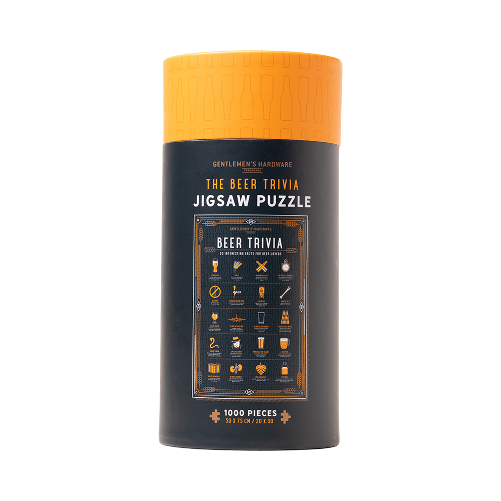 Upea lahjaidea oluen ystävälle - Olut trivia palapeli taattua Gentlemen's Hardware laatua. Palapelissä on 1000 palaa ja sen koko on koottuna 50x75 cm. Palapeli on pakattu tyylikkääseen lieriö... Lue lisää