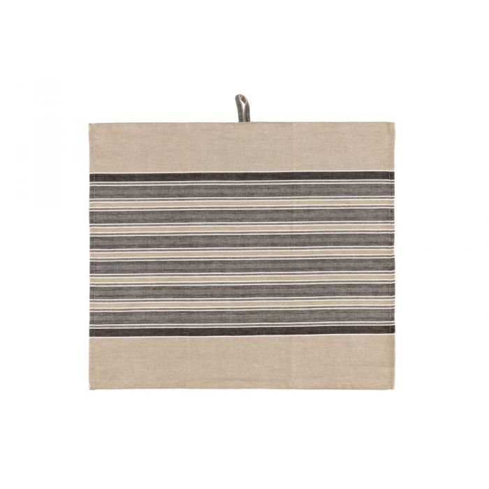 Harmaaraidallinen 50x60 cm kokoinen laudeliina. Klassinen kuosiinkudottu raitakuviointi, saunaan kuin saunaan sopiva maanläheinen väritys. Materiaali 100 % puuvilla. Pesu 40 asteessa.