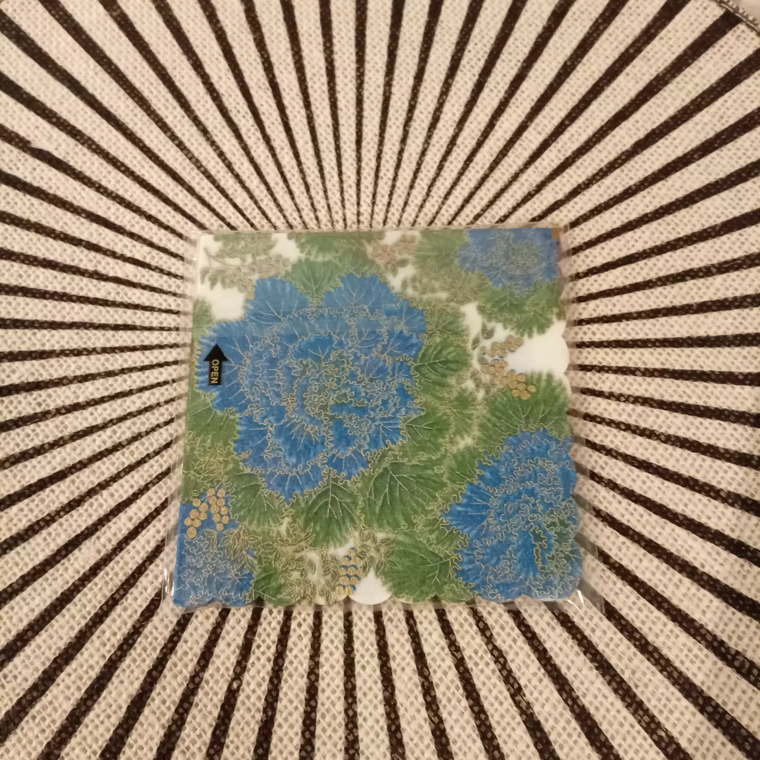 Ihanan ohut 1-kerroksinen japanilainen kahviservetti. Servetissä on koristekaalin tapaista sinistä kukkaa.