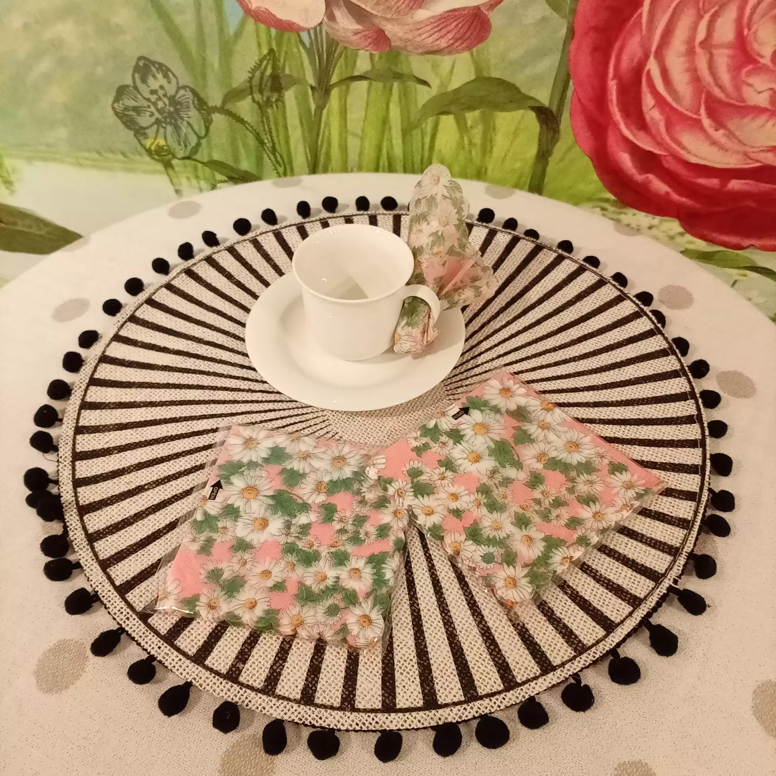 Ihanan ohut 1-kerroksinen japanilainen kahviservetti. Servetissä on päivänkakkaroita vaalean oranssilla pohjalla. Pakkauksessa on 20 servettiä. Servetin koko on avattuna 228x228 mm.... Lue lisää