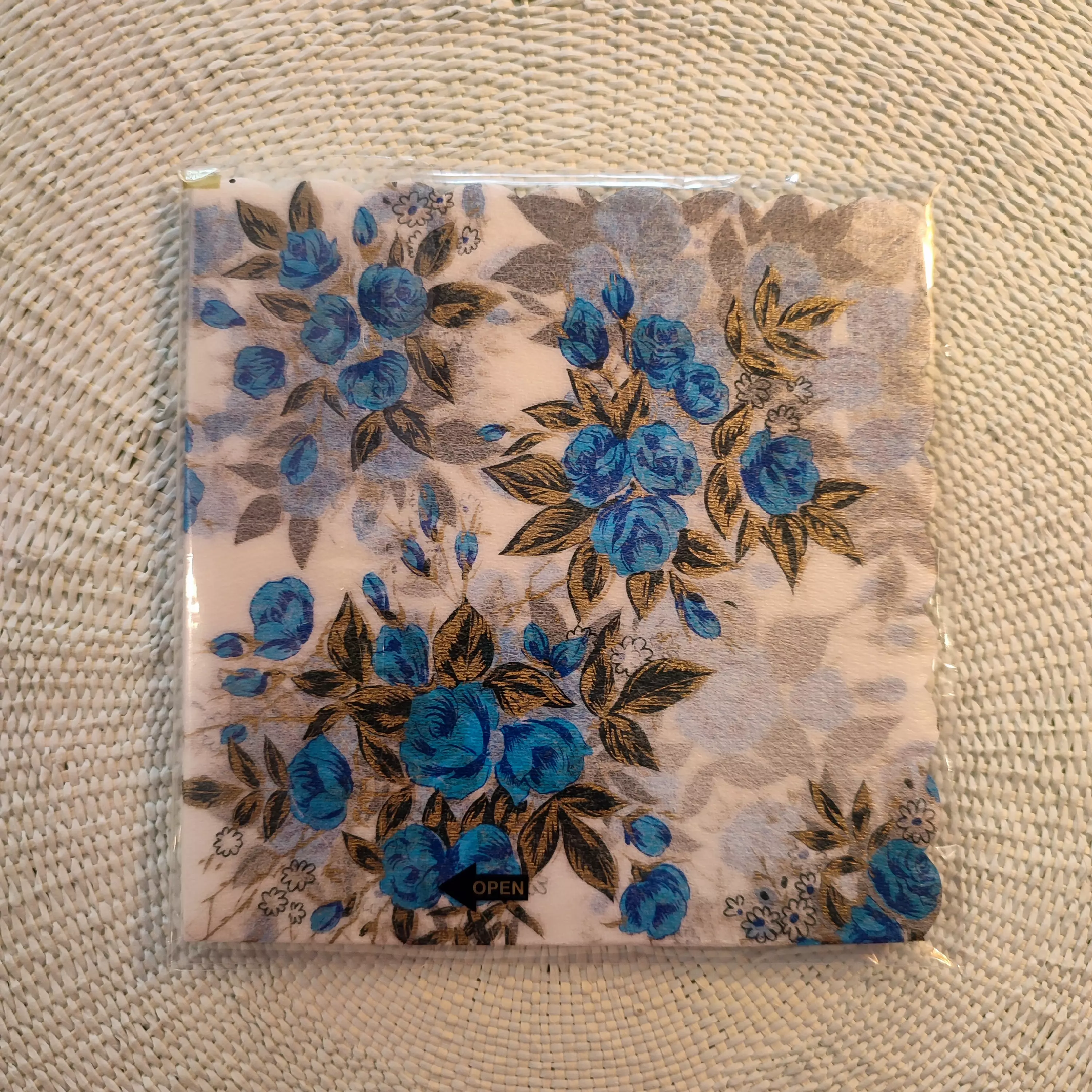 Ihanan ohut 1-kerroksinen japanilainen kahviservetti. Servetissä on sinisiä ruusuja kultakoristeisilla lehdillä. Pakkauksessa on 20 servettiä. Servetin koko on avattuna 228x228 mm.... Lue lisää