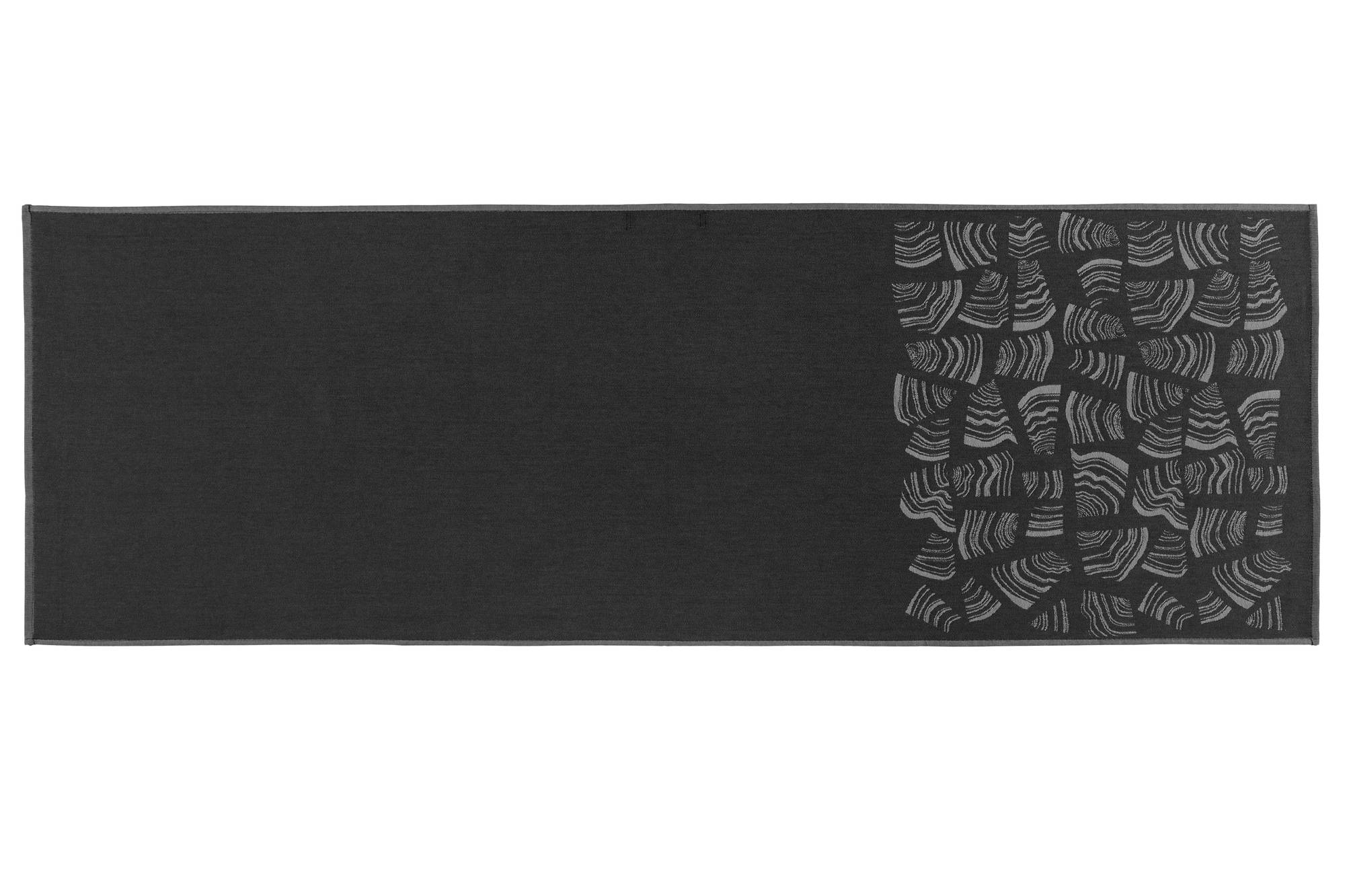 Mustanharmaa Rento Pino Laudeliina 50x150 cm. Laadukas Jacquard-kudottu, pitkä laudeliina säilyttää muotonsa ja kuosi toistuu kauniina pesusta toiseen. Pehmeä, kevyt puuvilla on rento materiaali saunaan. Se tuntuu vilpoisalta ihoa vasten, imee hyvin kosteutta ja kuivuu nopeasti. Design by Anna Säteri.