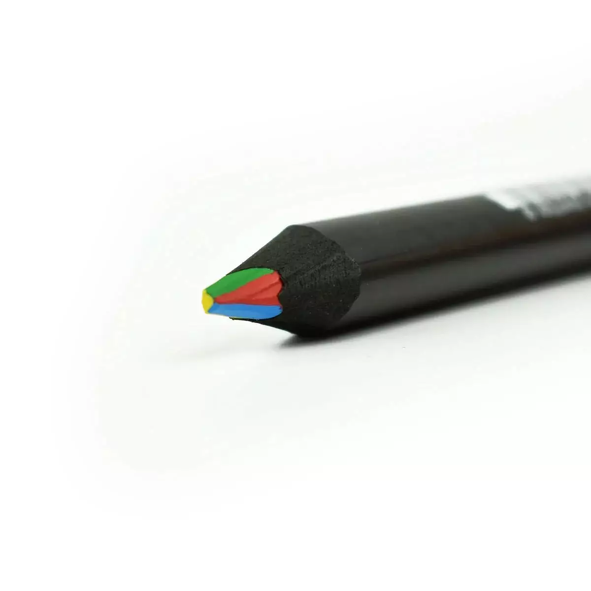 Hauska monivärinen puuvärikynä, jossa ergonominen kolmionmallinen muotoilu.