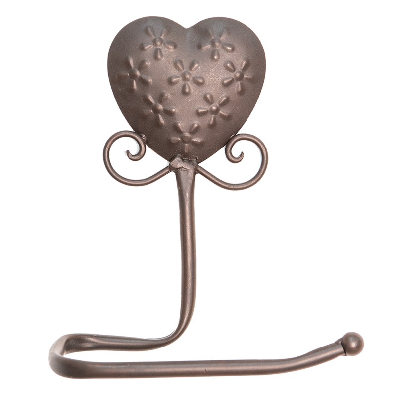 Tyylikäs sydän wc-paperiteline, ruskeaa kevyttä metallia. Sydämen takana on kiinnityslovi. Sydämen koko n. 10,5 x 11 cm. Koko telineen koko on 19 x 11 x 21 cm.
