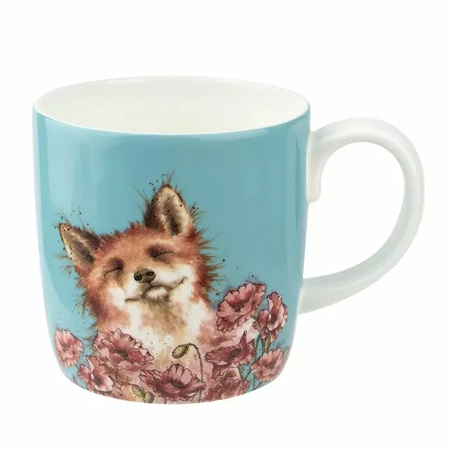 Tämä kauniisti kuvitettu "Poppy field" kettu muki on tehty hienosta luuposliinista ja sen on valmistanut laadukkaasta keramiikasta tunnettu Royal Worcester. Mukissavon sama kuvitus kummallakin puolella.