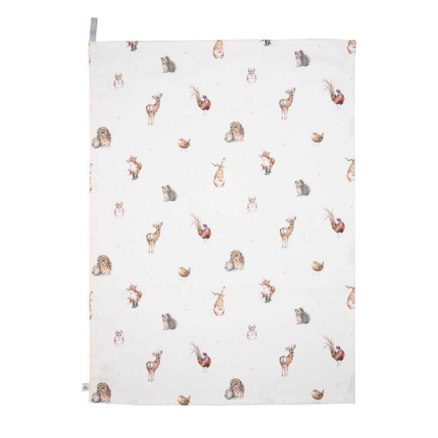 Kaunis Wrendale keittiöliina Woodlanders, jonka etupuoli on kauttaaltaan kuvioitu metsän eläimillä. Keittiöpyyhkeessä on ripustuslenkki. Materiaali 100% puuvillaa. Koko 690mm x 500mm.