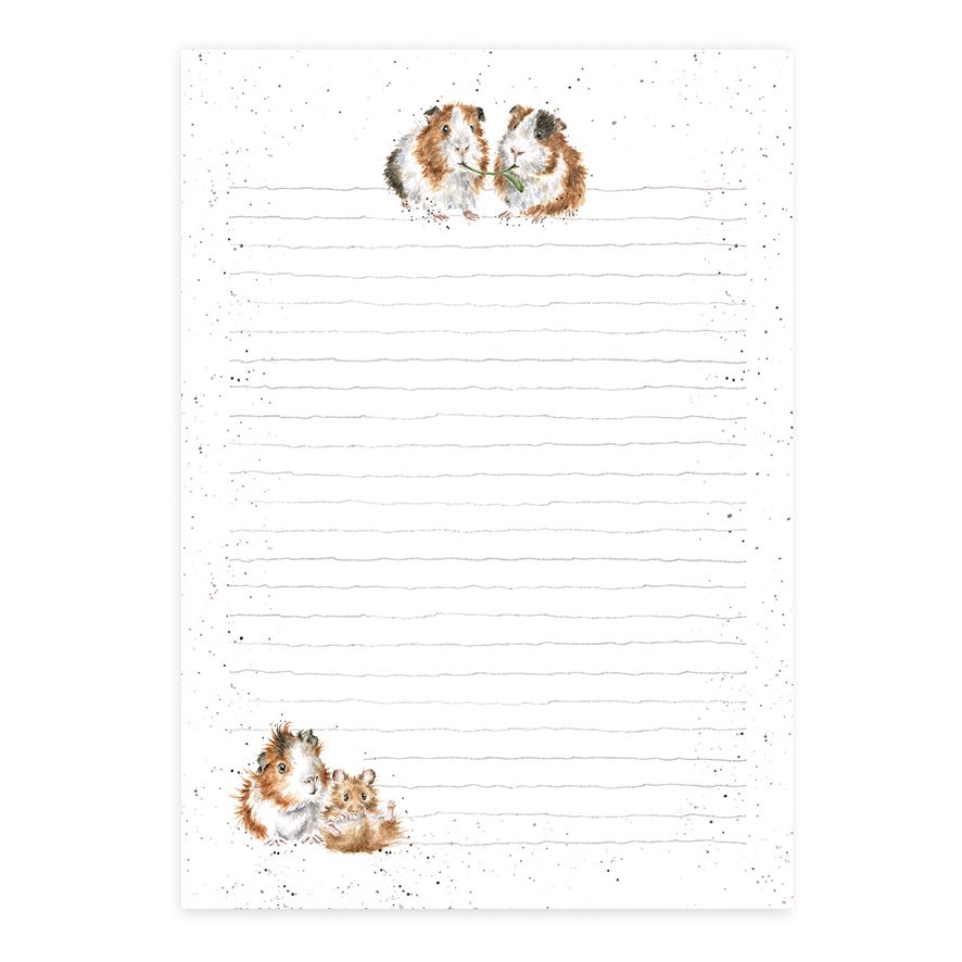 Wrendalen A5 kirjoituslehtiö muistiinpanoille, listoille, kirjeenvaihtoon... Viivoitetuilla lehtisillä söpöstelevät marsut. Lehtiössä 52 sivua.