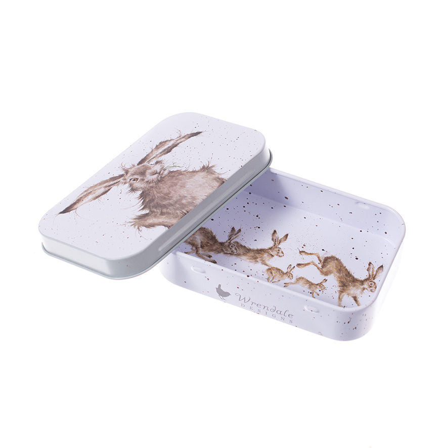 Ihana peltinen pikkurasia pikkutavaroille, koruille, karkille, lahjarasiaksi… Kuvat kannessa ja pohjassa sekä sisäpuolella myös kannessa ja pohjassa. Koko 9,5x2x6cm.