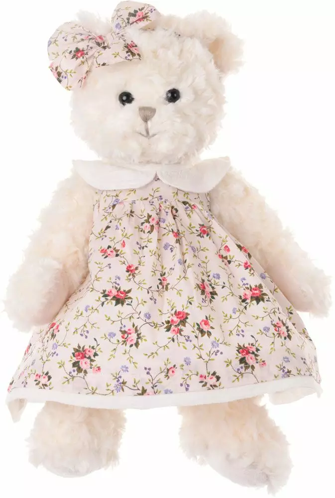 Ihanalla Bella Sophie nallella on yllään kaunis kukkamekko ja samaa kuosia oleva rusettipanta. Nallen koko n. 30 cm.