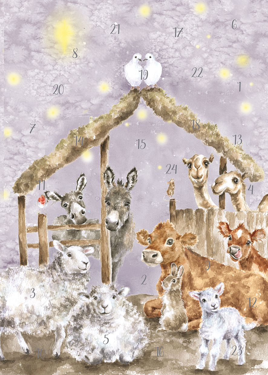 Kaunis A4 kokoinen joulukalenteri Wrendale kuvituksella. Joulukalenterin mukana tulee kirjekuori.