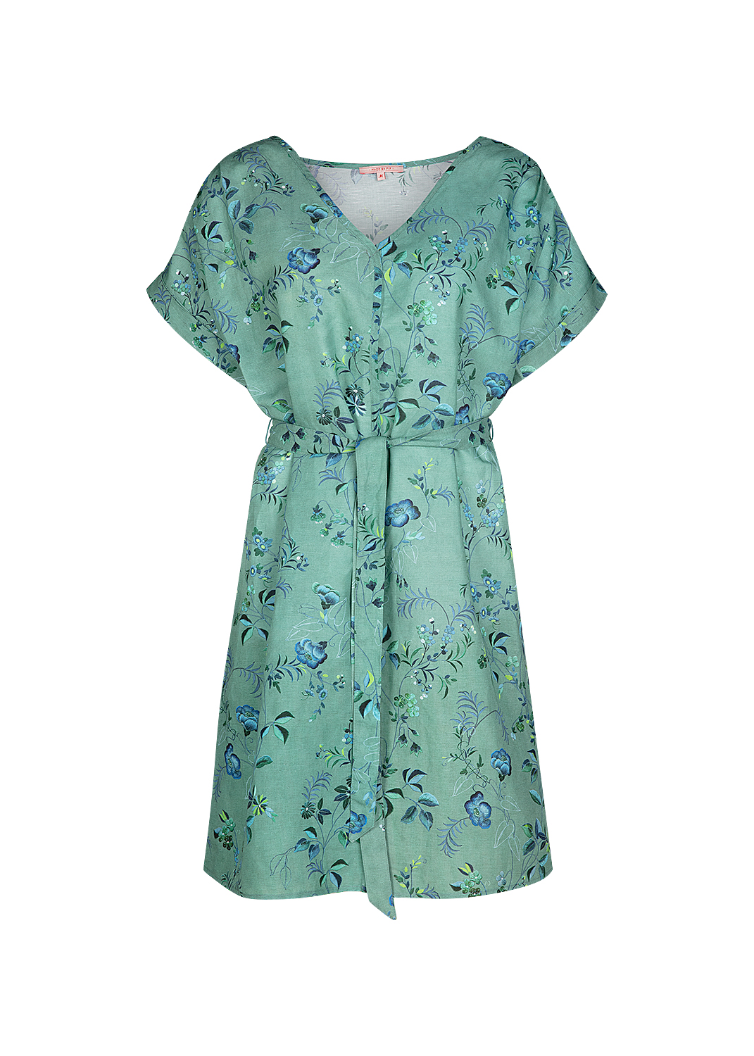 Kaunis PiP Studio kesätunika / -mekko Tokyo Blossom kuviolla. Mekko on ihanan kevyttä materiaalia. V-aukkoisessa mekossa on lyhyet hihat ja kangasvyö. Mekko on saatavilla myös punaisena.