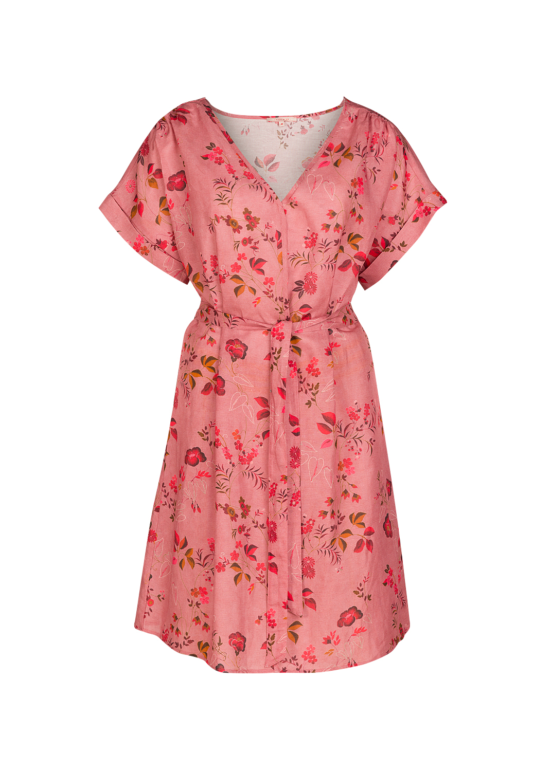 Kaunis PiP Studio kesätunika / -mekko Tokyo Blossom kuviolla. Mekko on ihanan kevyttä materiaalia. V-aukkoisessa mekossa on lyhyet hihat ja kangasvyö. Mekko on saatavilla myös sinisenä.