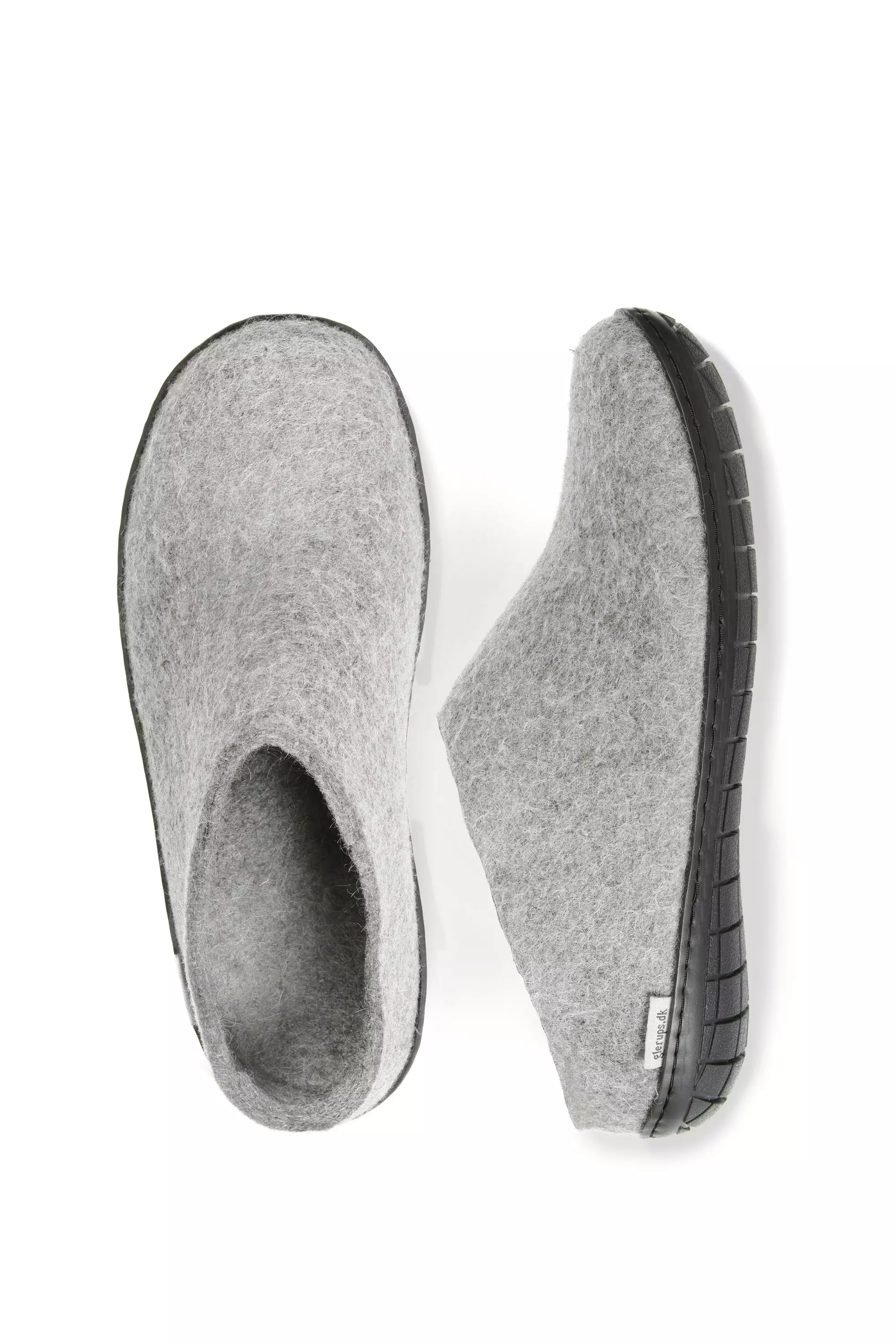 Glerups harmaat huopatöppöset matalalla kannalla ja kumipohjalla
