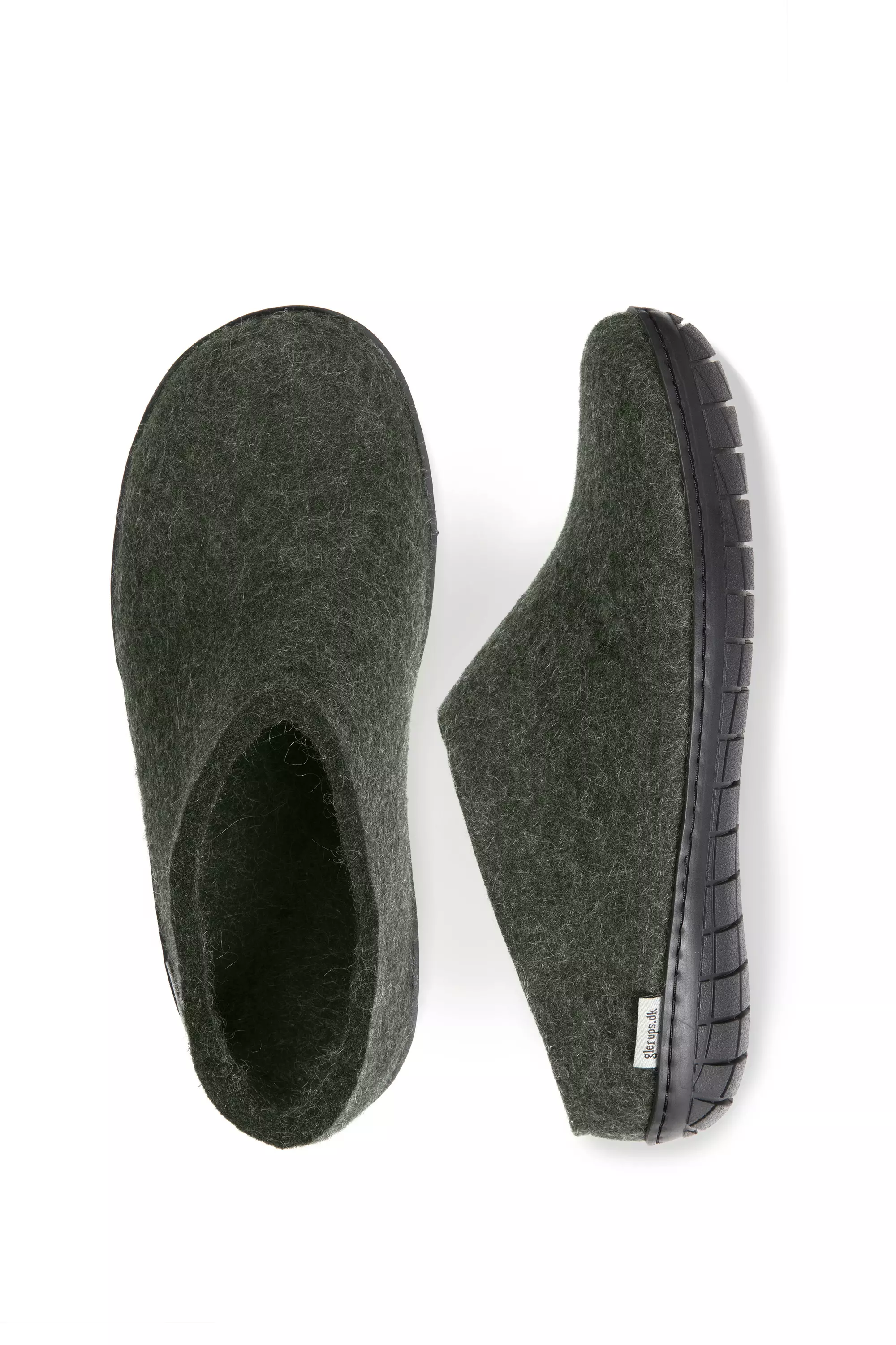 Glerups vihreät huopatossut matalalla kannalla ja kumipohjalla