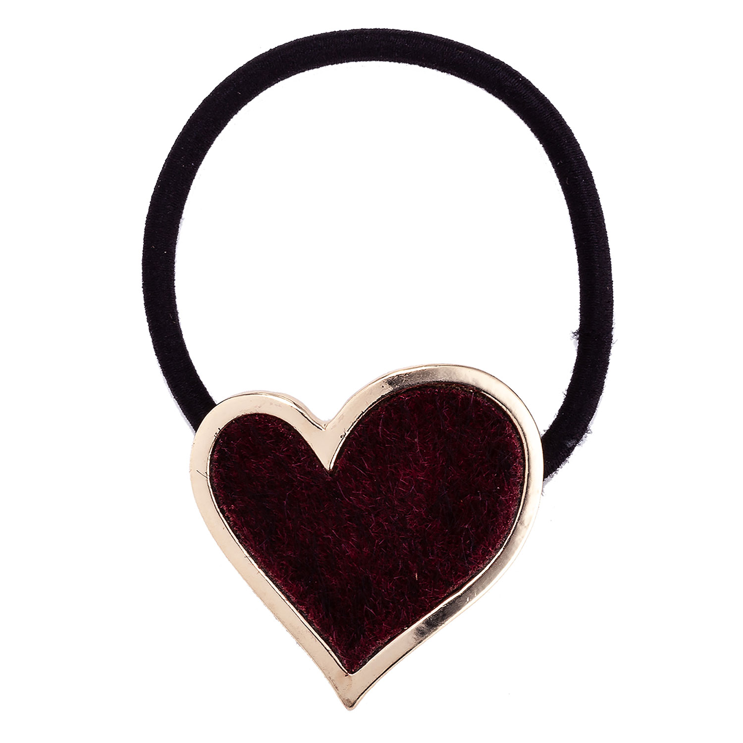 Hiuslenkki sydän koristeella, jossa on kullanvärinen reuna ja pohja ja burgundin värinen kankainen keskus. Sydämen halkaisija on n. 3,8 cm ja kumilenkin halkaisija n. 5 cm venyttämättömänä.... Lue lisää