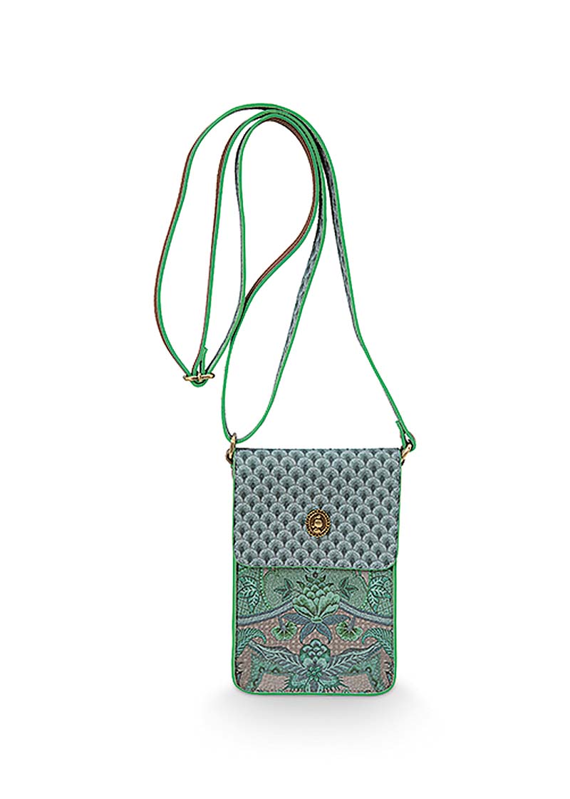 Tyylikäs puhelinlaukku jokapäiväiseen käyttöön. Puhelinlaukku / olkalaukku on koristeltu mielikuvituksellisilla sintsi kukilla ja lehdillä. Symmetrisesti asetellut, taidokkaasti koristellut kukkaoksat antavat mallille luksusmaista hohtoa. Puhelinlaukussa on tasku puhelimelle ja erillinen vetoketjutasku vaikka korteille. Laukussa on säädettävä olkahihna. Laukku suljetaan magneetti napilla. Laukku on tehty tekonahkasta. Koko 13 x 20 x 4,7 cm