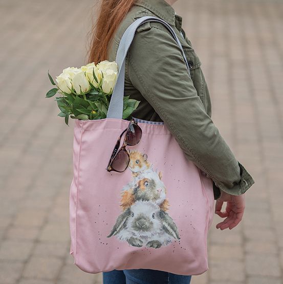 Tämä upea canvas kassi, jossa kaunis Wrendale designs kuvitus "Piggy in the middle" (marsu, jänis ja hamsteri) on tehty paksusta canvas materiaalissta ja on täydellinen kassi matkustukseen, liikkumiseen, ostoksille tai mihin vain. Kassissa on kulmavahvikkeet, jotta sinne voi oikeasti pakata paljon, värikäs raidallinen vuori, kontrastiväriset kahvat ja sivulla ommeltu Wrendale merkki. Materiaali: canvas, vuori 100% puuvillaa. Koko 420mm x 400mm x 100mm.