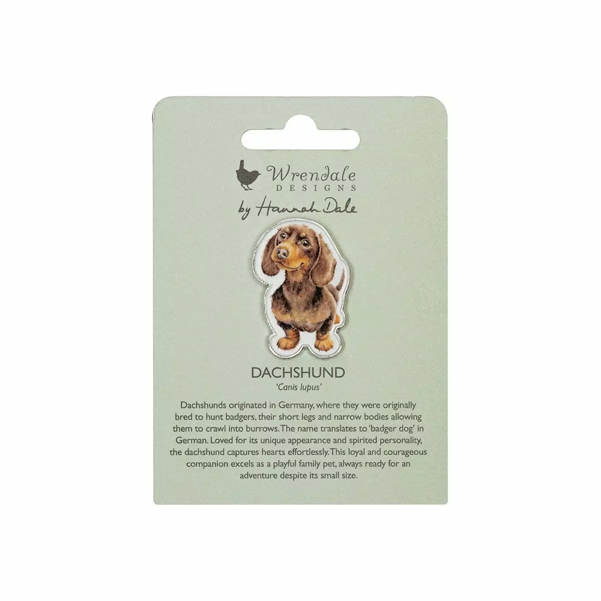 Ihastuttava mäyräkoira pinssi. Pinssin koko on n. 4 x 2,5cm. Ihana pikkulahja kaverille tai hemmottelua itselle. Lisää ripaus Wrendalen taikaa asusteihisi tällä ihanalla eläinpinssillä.... Lue lisää